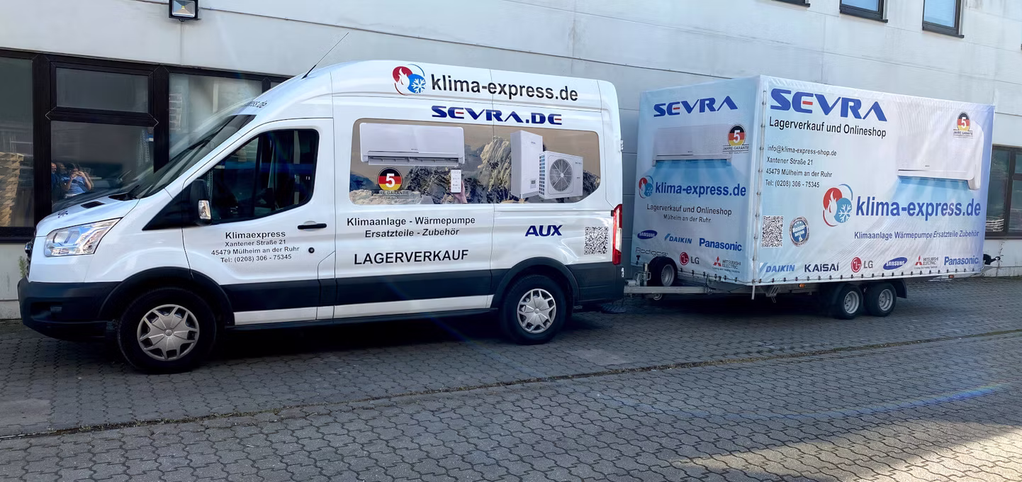 Willkommen bei Klima-Express Wir sind ein stationärer Großhändler in der Klimabranche. Wir führen ein komplettes Sortiment an Klimaanlagen und Wärmepumpen führender Hersteller und Zubehör (Anschlüsse, Kanäle, Pumpen, Bausätze). Wir sind offizieller Distributor und Vertreter von Geräten der namhaften Hersteller Sevra und AUX auf dem deutschen Markt. Wir besitzen unsere eigenen Lager. Dadurch ist das Sortiment sofort verfügbar und Sie haben die Möglichkeit, die Ausstellung zu besichtigen und sich professionell beraten zu lassen. Wir laden Sie in die Zentrale unseres Unternehmens ein, sowohl Monteure als auch Privatpersonen. Besuchen Sie auch unseren